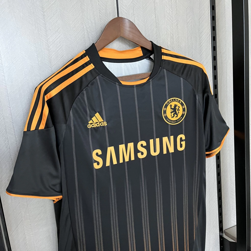 Essa é a segunda camisa histórica retrô da Chelsea usada em 2010/11, esse modelo possui a cor predominantemente Preto.