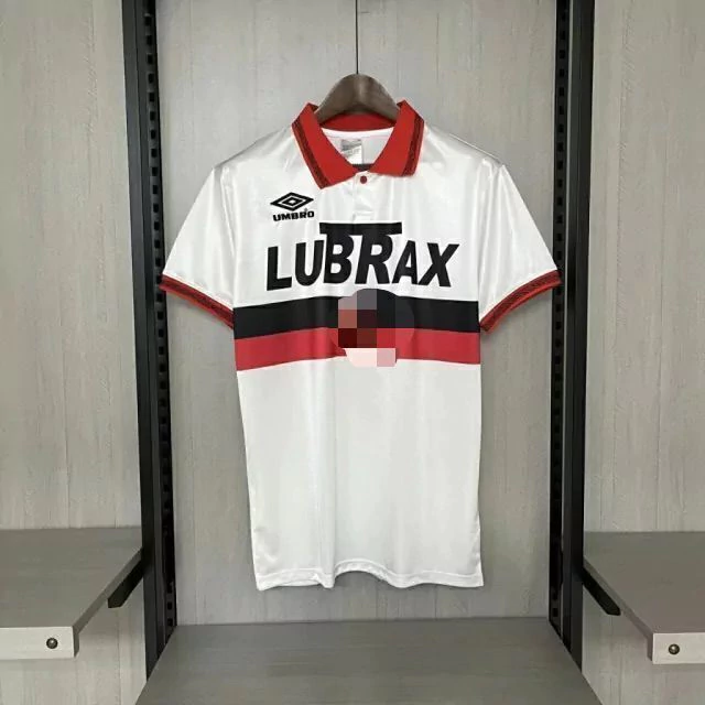 Essa é a camisa retrô do Flamengo do ano de 1993, esse modelo possui a cor predominantemente Branca.