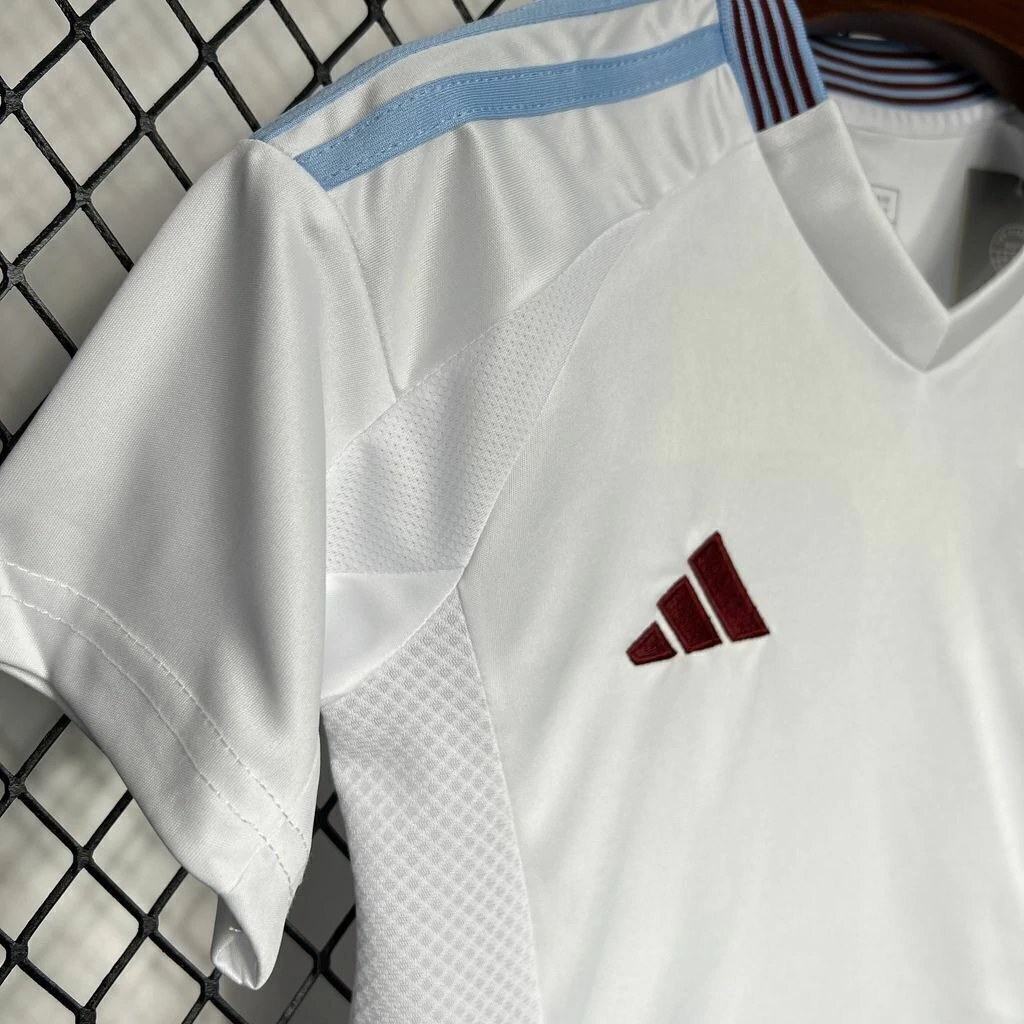 Esse é o conjunto infantil II do Aston Villa para temporada 2024/2025, esse modelo possui a cor predominante Azul e Branco.